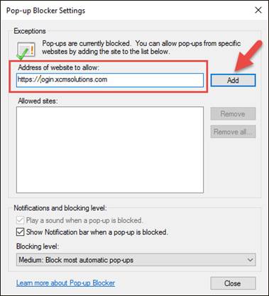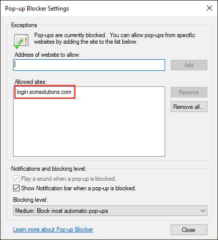 These settings apply to XCM 2015 only. IE provides two options for enabling Pop-ups, choose one below.
